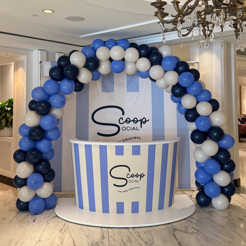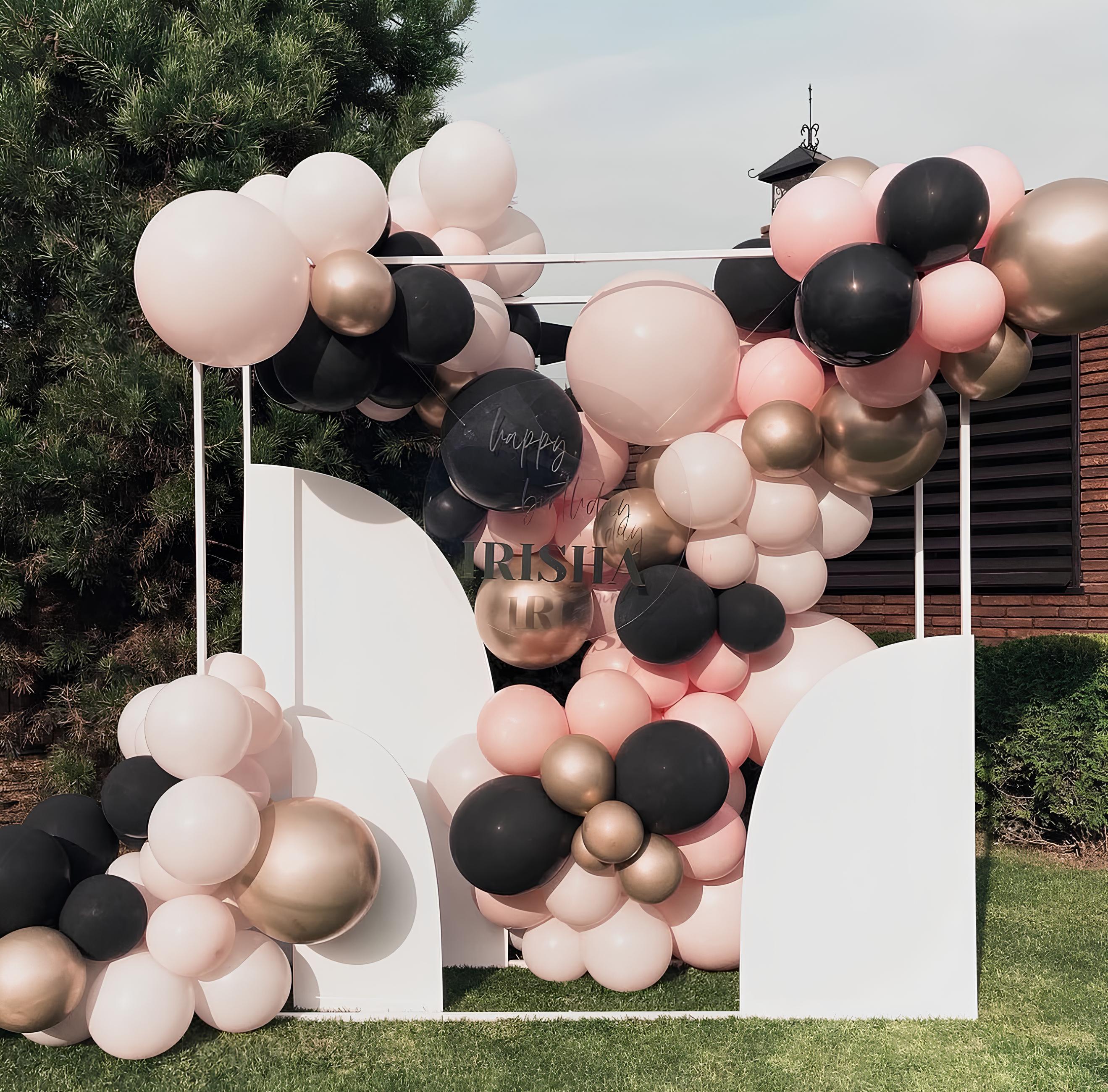 A freestanding balloon garland on a weighted base — no wall attachment needed. Great for hotels, restaurants, offices, or rental venues.
