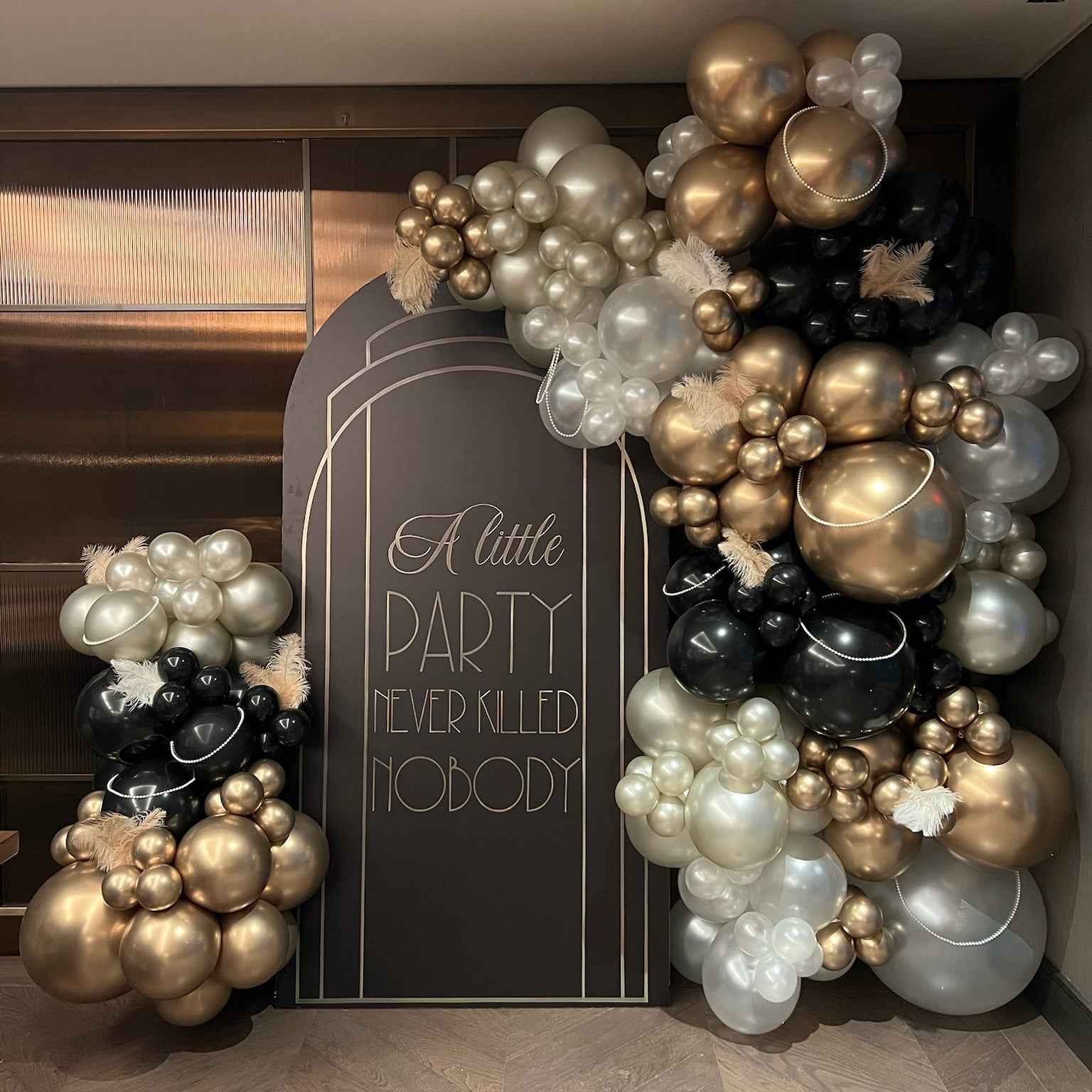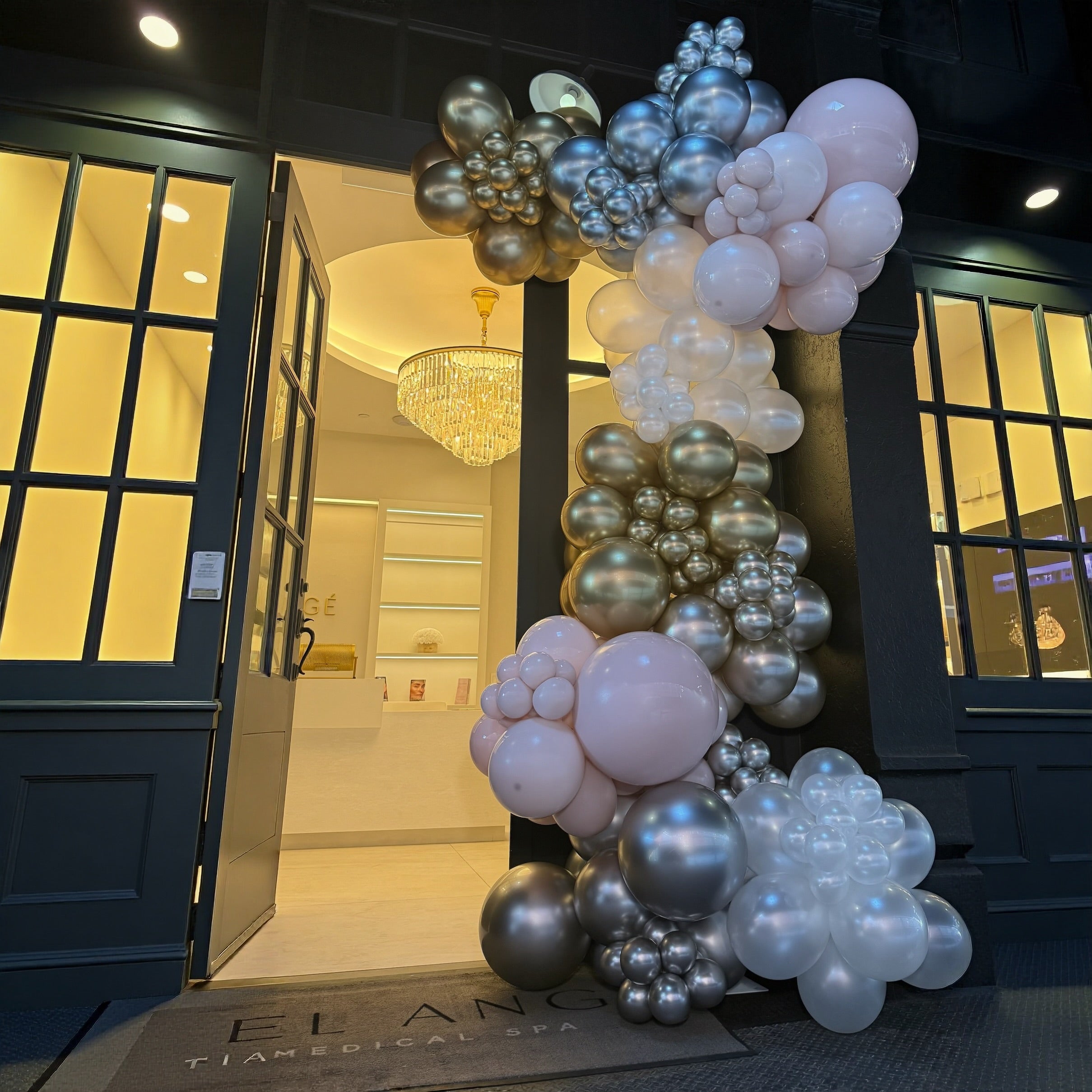 Beautiful balloon garland that is mounted on the entrance wall/door. Will be suitable for decoration entrance to a party room or newly opened large venue.