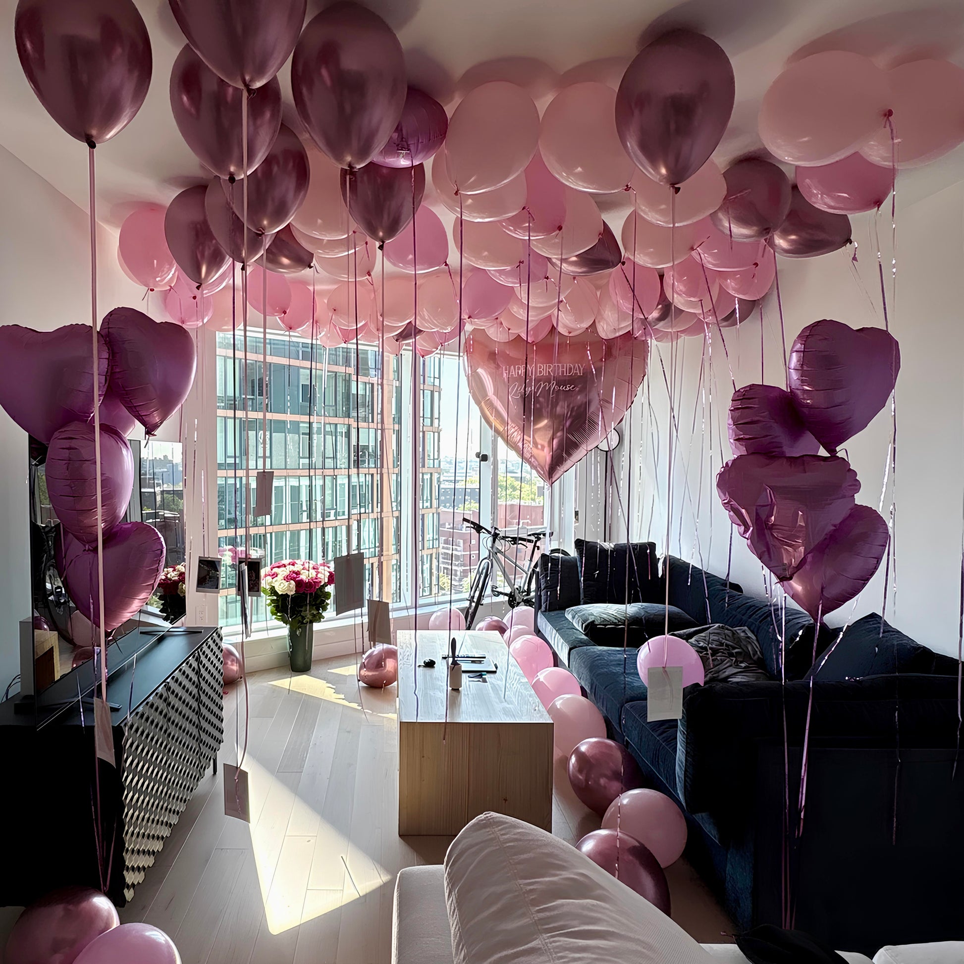 Deluxe Pink Love Balloon Room Set with GIANT 68" Custom Heart (Customized)
