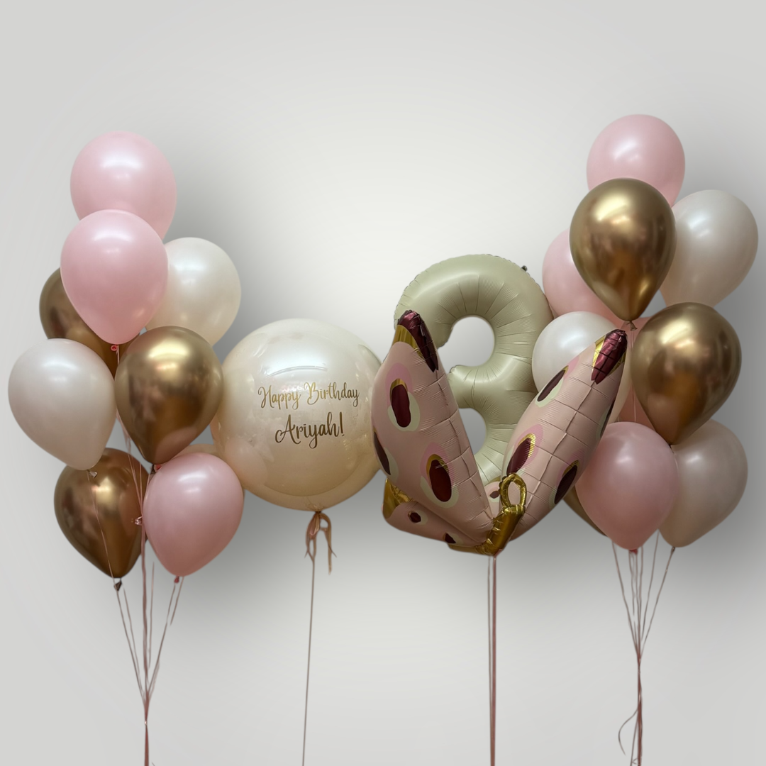 Latex balloons: pink, cream, gold
